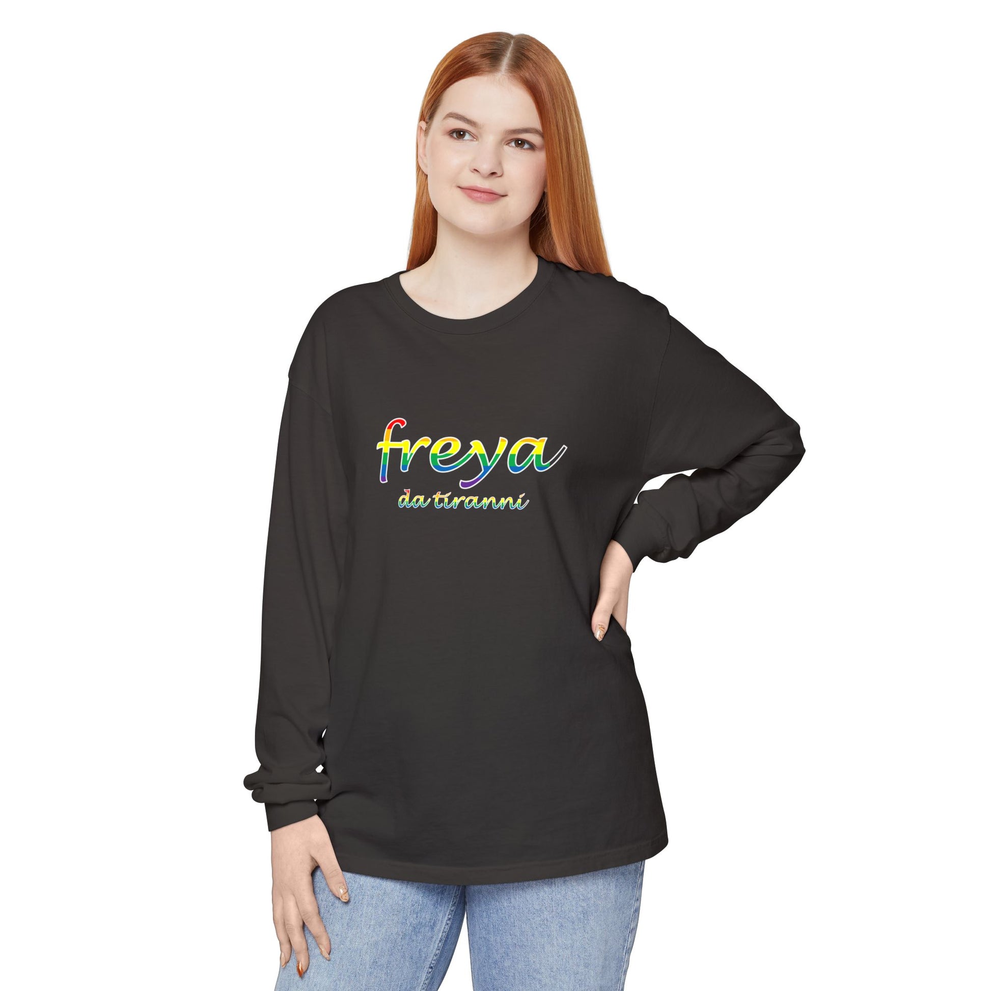 Freya Da Tiranni (FDT) features her own signature on this cozy, long-sleeved shirt - which you can wear to celebrate your support not only for Freya but also for the beautifully diverse and inclusive Pride community.